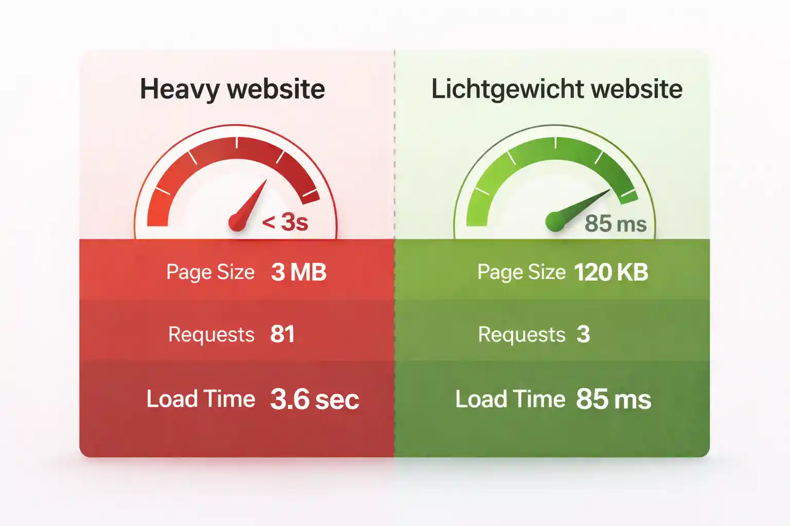 De pagina laadt in 85 milliseconden, gebruikt slechts drie requests en heeft een totale paginagrootte van 120 KB. Dat is hoe snel het web kan zijn wanneer je teruggaat naar de basis: semantische HTML en minimale code.